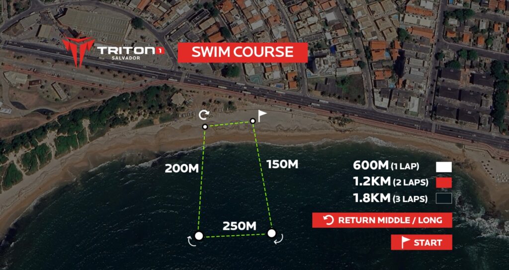 Participants will do one 600 meters lap for the SPRINT distance, two laps for the MIDDLE distance and three laps for the LONG distance.